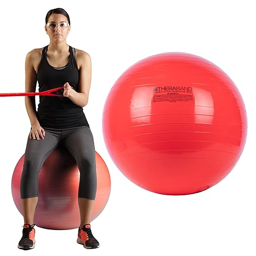 THERABAND Exercise Ball, Stability Ball with 55 cm Diameter for Athletes 5'1" to 5'6" Tall, Standard Fitness Ball for Posture, Balance, Yoga, Pilates, Core, & Rehab, Red