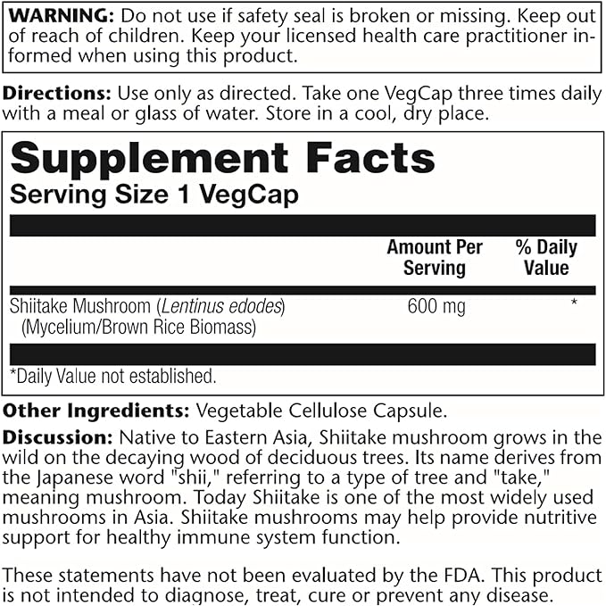 SOLARAY Shiitake Mushroom 600 mg | 100 Count