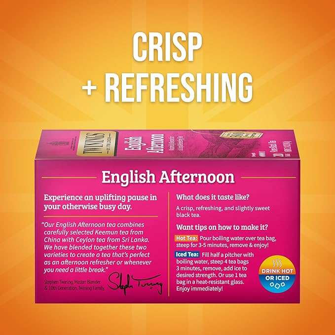 - SMOOTH, CRISP, REFRESHING: English Afternoon tea combines carefully selected Keemun tea from the Anhui Province in China with Ceylon tea from Sri Lanka.