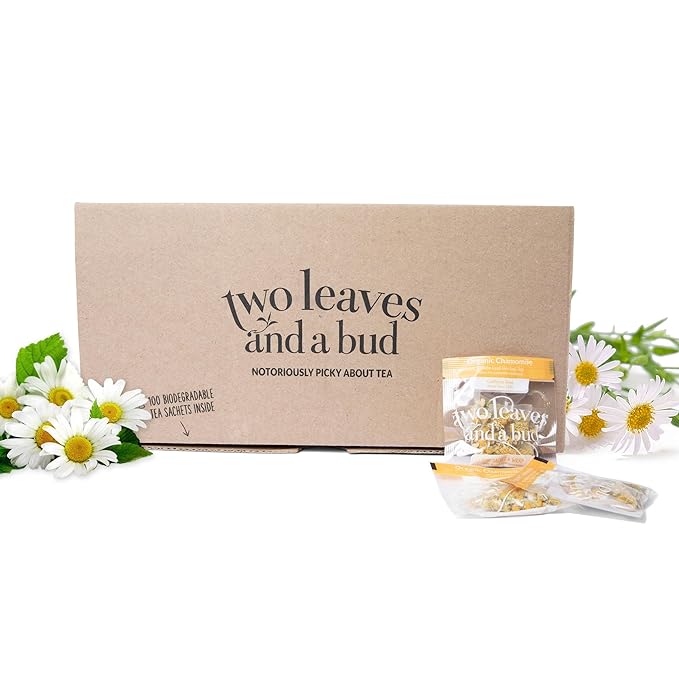 Two Leaves and a Bud Organic Chamomile Tea Bags, Naturally Caffeine Free, Whole Leaf Herbal Chamomile Tea in Compostable Sachets, 100 Count (Pack of 1)