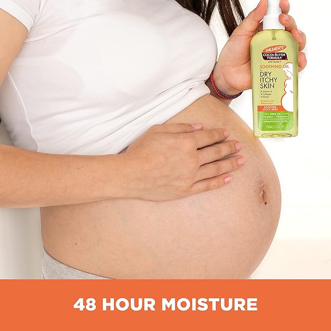 - Treatment For Dry, Itchy Skin: This Soothing Oil is uniquely formulated to soothe, moisturize and soften the dry, itchy skin associated with pregnancy. It comes in a convenient pump spray bottle for easy use