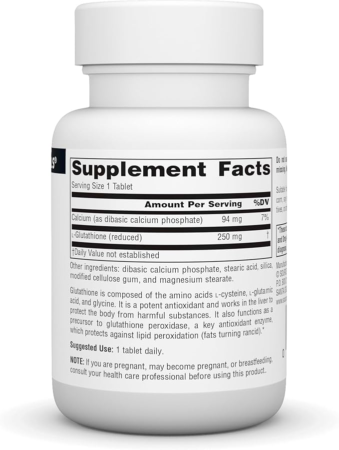 Source Naturals Reduced Glutathione, Antioxidant Supplement for Liver Support, 250mg - 60 Tablets