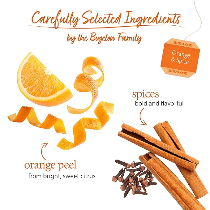 Bigelow Tea Orange & Spice Herbal Tea, Caffeine Free Tea with Orange and Herbs, 20 Count Box (Pack of 6), 120 Total Tea Bags