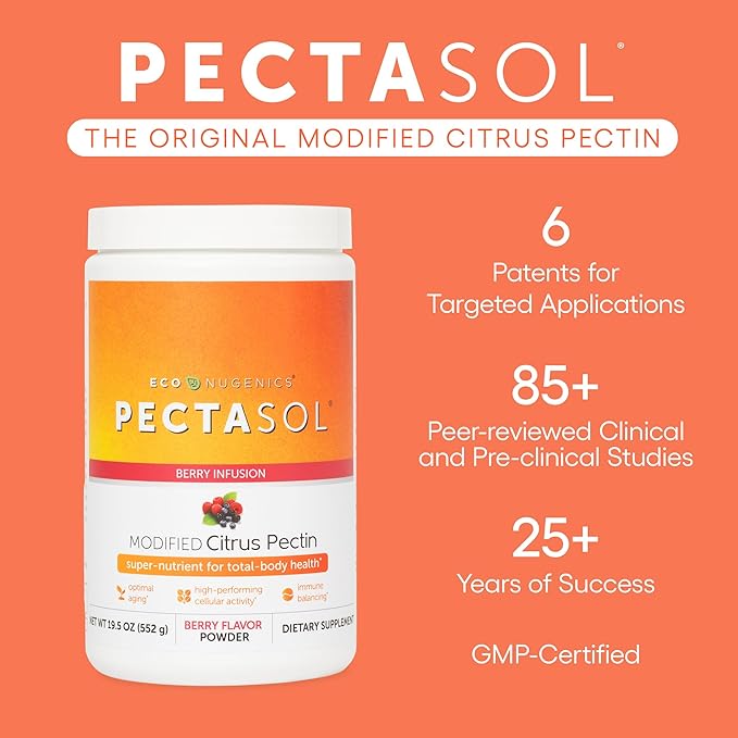 - A Patented Formula Purified to Achieve Maximum Absorption: Unlike regular citrus pectin, which doesn’t get absorbed into the bloodstream due to a high molecular weight, PectaSol is purified to achieve a low molecular weight and maximize absorption into the bloodstream; its effectiveness is backed by 80+ published studies*