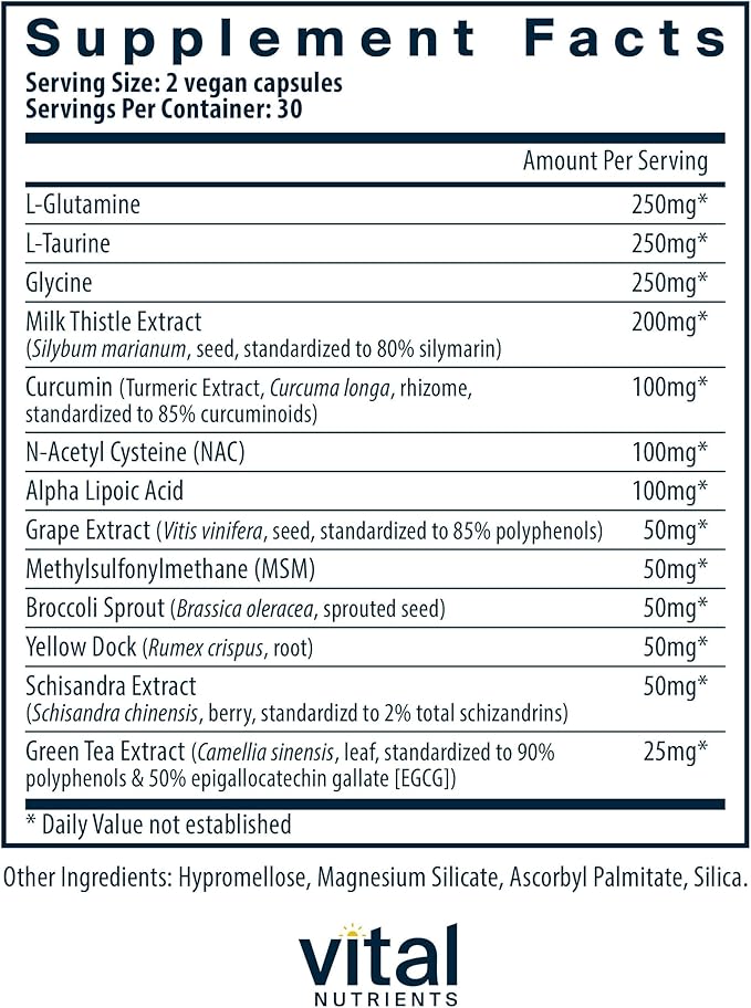- High Antioxidant Content to Support Natural Immune Function: Our liver detox supplement contains amino acids alongside a wide variety of antioxidants through ingredients including L-glutamine, L-taurine, glycine, milk thistle, curcumin, NAC, ALA, green tea extract, and methylsulfonylmethane (MSM)*