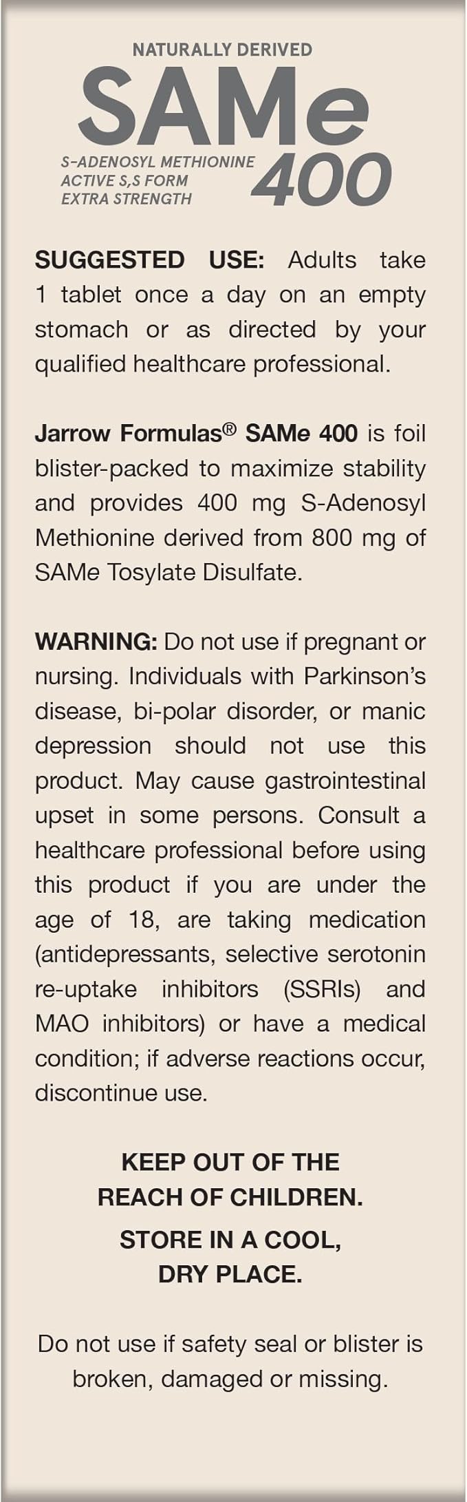 Jarrow Formulas® Same 400 mg, Supports Joint Health, Liver Function, Brain Metabolism, 30 Tablets, Up to a 30 Day Supply
