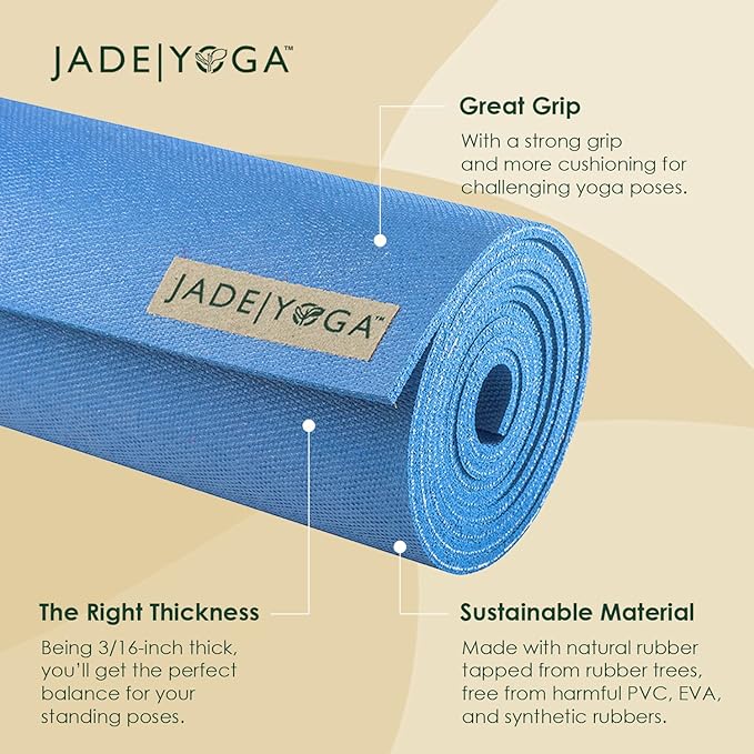 - THE PERFECT YOGA MAT: Discover the ultimate yoga experience with the Jade Harmony Yoga Mat. At 3/16'' thick and 24'' wide, this mat strikes the ideal balance of grip, comfort, and weight, making it the top choice of yoga teachers and practitioners worldwide. With its exceptional performance, it provides a satisfying and fulfilling practice session every time.