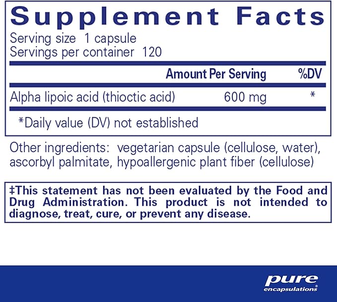 Pure Encapsulations Alpha Lipoic Acid 600 mg - ALA Supplement for Liver Support, Antioxidants, Nerve Health, Cardiovascular Health & Carbohydrate Support - Premium Alpha Lipoic Acid - 120 Capsules