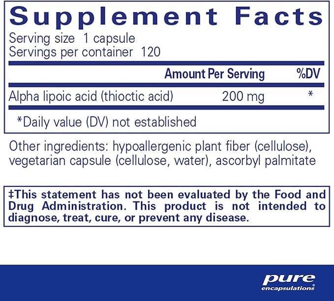 Pure Encapsulations Alpha Lipoic Acid 200 mg - 200mg ALA - Liver & Antioxidant Support* - for Nerve Health & Carb Metabolism - Vegan & Non-GMO Supplement - 120 Capsules