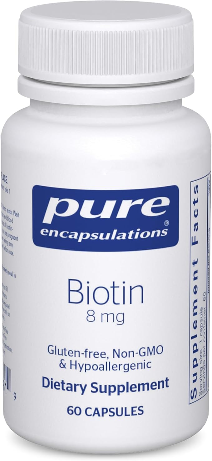 Pure Encapsulations Biotin 8 mg - B Vitamin Supplement to Aid Stress Relief, Hair, Skin & Nail Strengthening, Metabolism, Carbohydrate Support & Nervous System* - with Premium Biotin - 60 Capsules