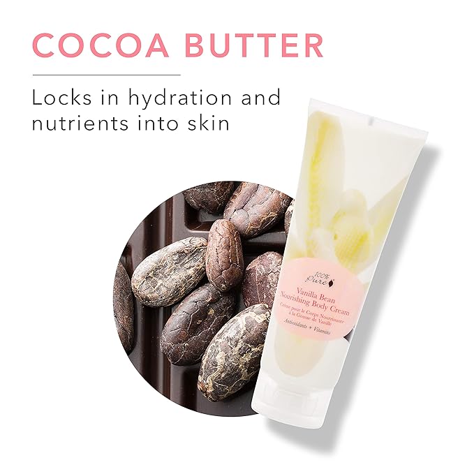 100% PURE Nourishing Body Cream Vanilla Bean Lotion Luxurious Dry Skin Hydration & Replenishment Natural Anti-Aging Moisturizer & Skincare for All Skin Types Women & Men - Vegan - 8 oz