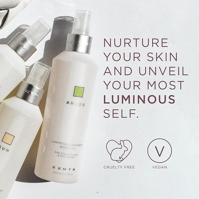 Zents Luminous Cashmere Body Oil (Ore Fragrance) | Moisturizing Body Oil with Vitamin E & Organic Coconut Oil | Softens & Smooths Skin | 8 fl oz