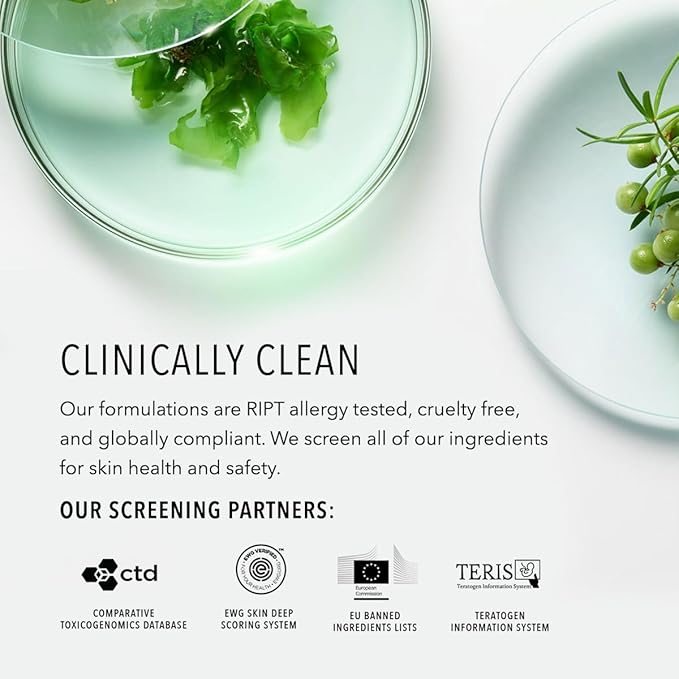 - Clinically Clean: Free from genotoxins, parabens, phthalates, sulfates, and harmful fragrance. Our formulations are RIPT allergy tested, cruelty free, and globally compliant. We screen all of our ingredients for skin health and safety