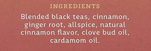 - Chai Spice Black Tea: This warming chai tea blends black teas, cinnamon, ginger root, cloves, cardamom oil, and allspice to deliver a cup that is strong and slightly sweet with lingering notes of warm spices