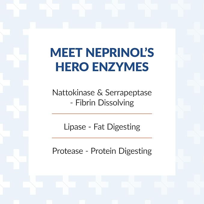 - Advanced fibrin defense: A powerful enzyme blend with serrapeptase, nattokinase and lipase (30,000 FU/serving) breaks down the excess fibrin in your bloodstream