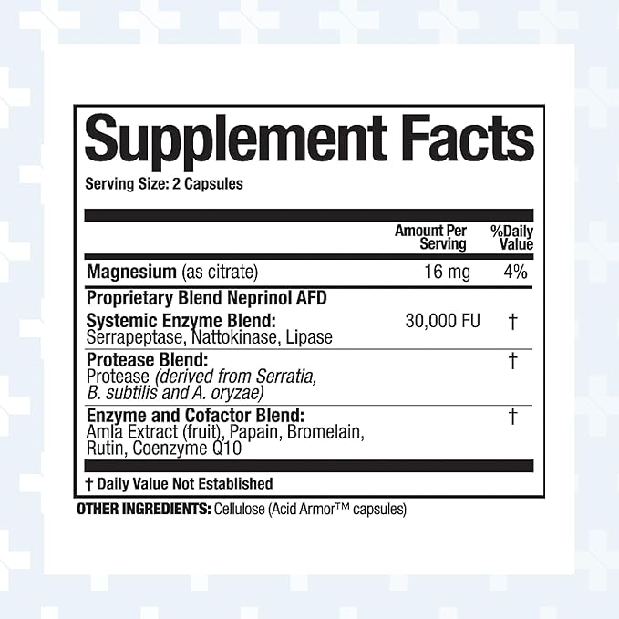 - Whole body enzyme support: Support immune health, joint comfort, circulation, and digestion with our proprietary enzyme blend including high doses of nattokinase & serrapeptase*