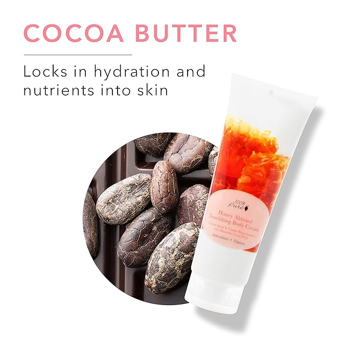 100% PURE Nourishing Body Cream, Honey Almond, Body Lotion for Dry Skin, Anti-Aging, Moisturizing Cocoa Butter, Natural Body Lotion - 8 Fl Oz