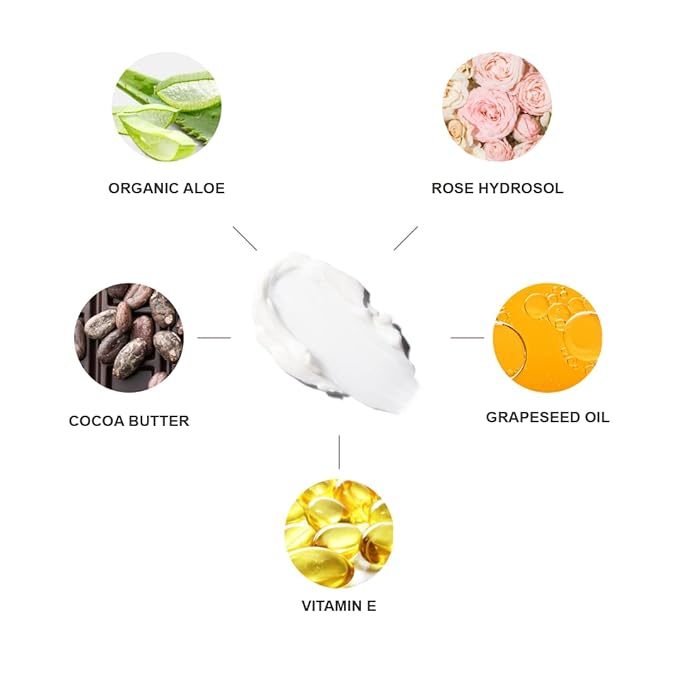 - HEALTHY GLOW HEAD TO TOE - Restore skin's radiance with stimulating vitamin E and C helping to fortify your skin’s protective barrier; cocoa and avocado soothe dryness and flaking, while aloe and rose hydrosol help boost moisture retention.