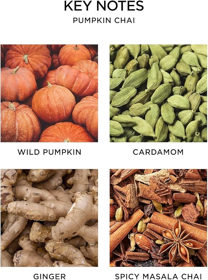- WARM & SWEET GOURMANDS - Wild pumpkin, spicy masala chai, cardamom, ginger, and cinnamon combine in this sophisticated fragrance, creating a cozy autumn ambience in your home.