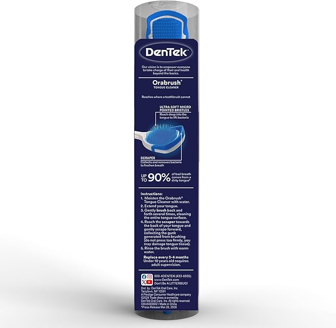 - Dual-action tongue cleaner featuring ultra-soft, micro-pointed bristles promote good breath.