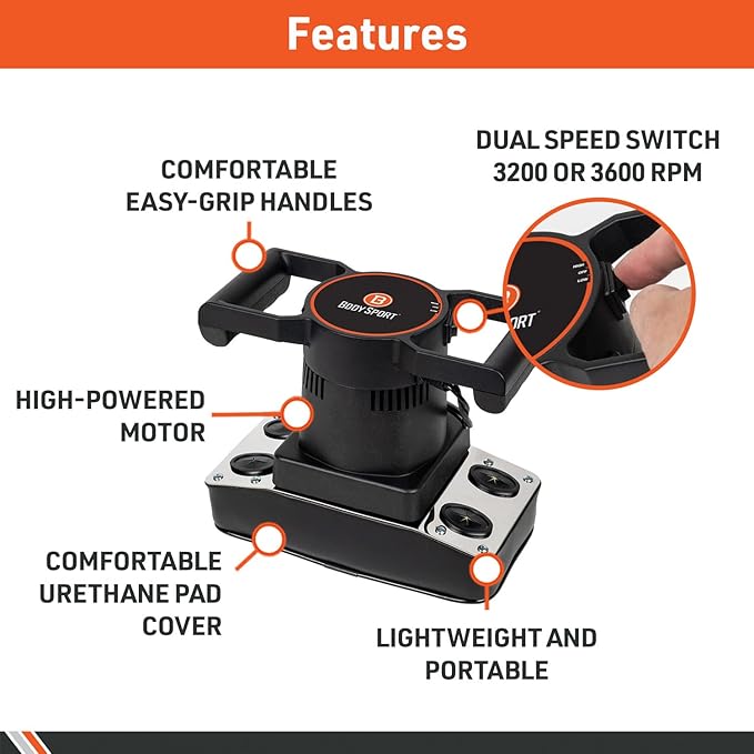 - EXPERIENCE THE DIFFERENCE. The Body Sport 2-Speed Professional Massager relieves tension and relaxes muscles while increasing blood flow to injured areas. This premium full body massager creates myofascial release in the back, buttocks, hamstrings, quads, calves, feet, shoulders, and arms