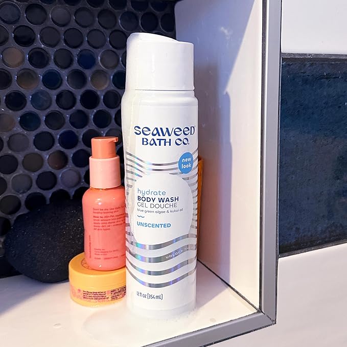 Seaweed Bath Co. Hydrate Body Wash - Unscented - Foaming Shower Gel Cleanser with Natural Ingredients - Fragrance Free and Gentle - Good For Sensitive Skin - 12 oz