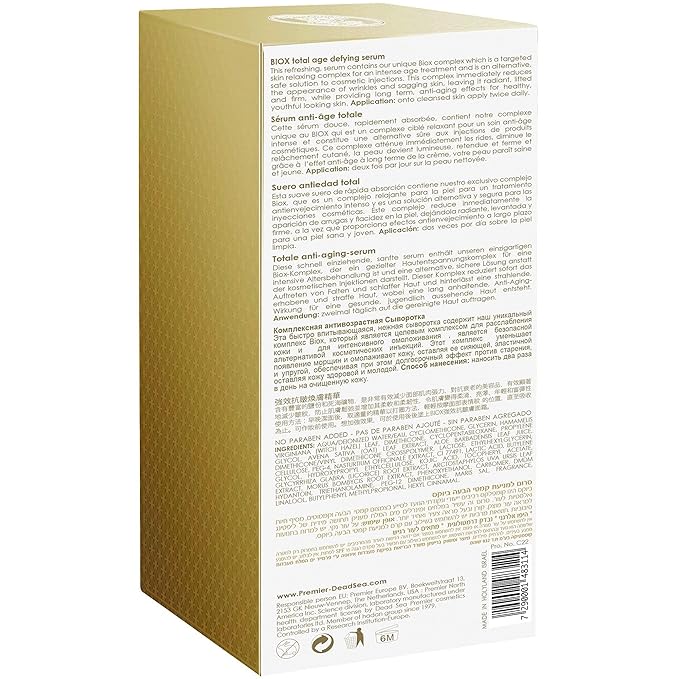 Premier Dead Sea Classic BIOX serum, Total Age Treatment, Anti-Age, anti wrinkle, anti expression marks gel Complex, soft, gentle, non tacky 1.6 fl.oz
