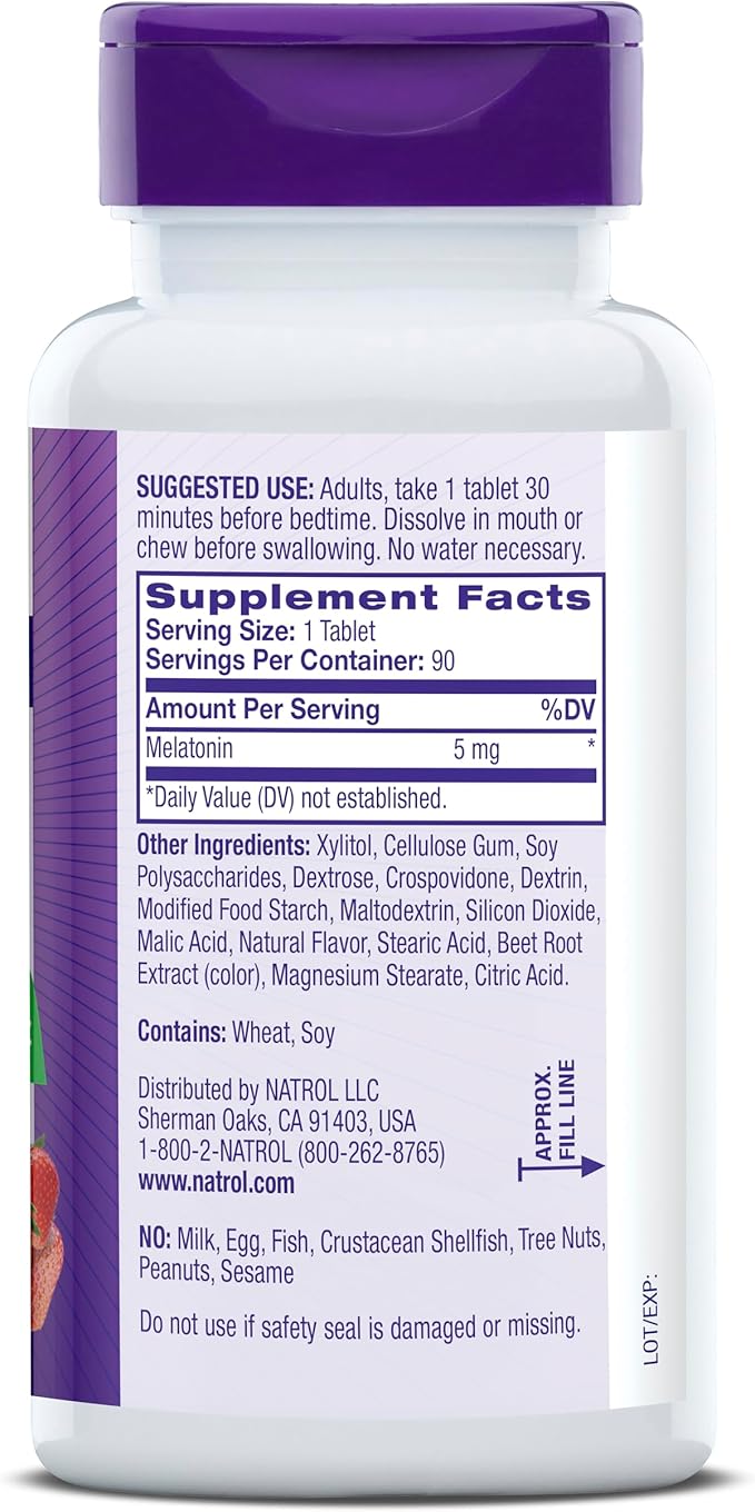 Natrol Fast Dissolve Melatonin 5 mg, Melatonin Supplements for Restful Sleep, Sleep Support for Adults, 90 Strawberry-Flavored Tablets, Up to a 90 Day Supply