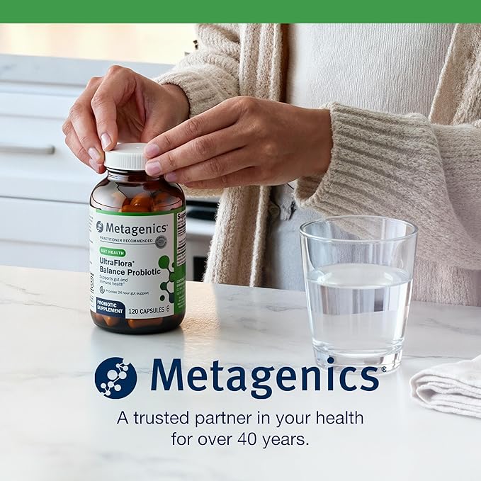 Metagenics UltraFlora Balance Probiotic - Shelf-Stable Daily Gut Health Supplement for Digestive & Immune Support* - Non-GMO & Gluten-Free - 120 Capsules