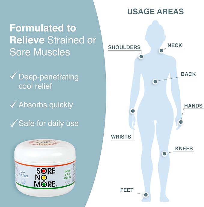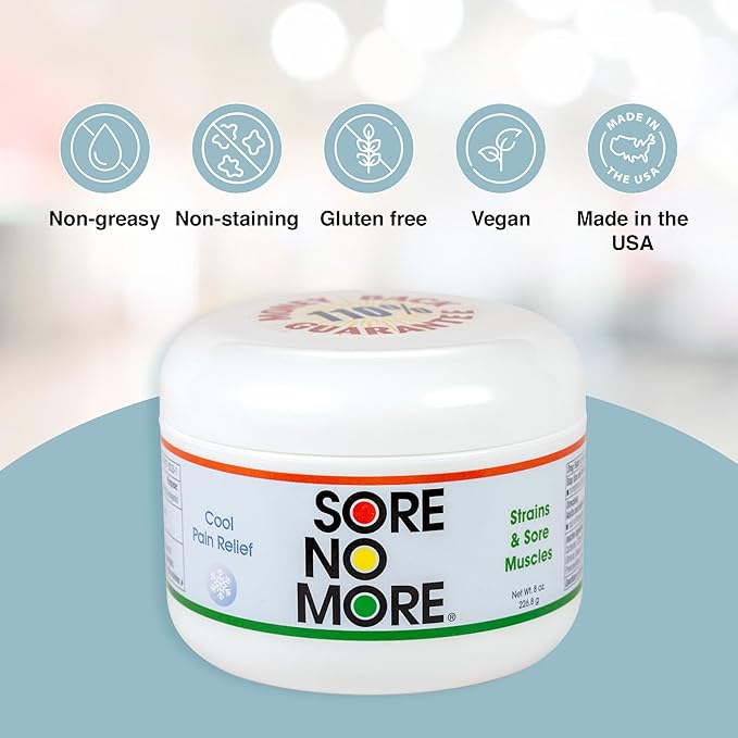 Sore No More Cool Relieving Gel for Aches & Pains in Muscles & Joints associated with Strains, Bruises & Sprains | Absorbs Quickly with a Refreshing Lemon Aroma | 8 oz Jar