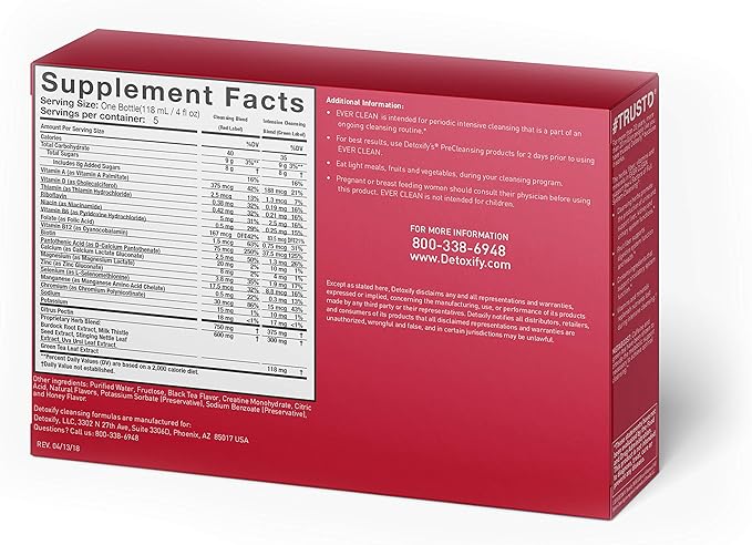 Detoxify – Ever Clean Cleansing Program – Honey Tea – 5 x 4 oz Bottles – 5-Day Solution – Green Tea, Vitamins & Minerals – Plus Sticker and Bag