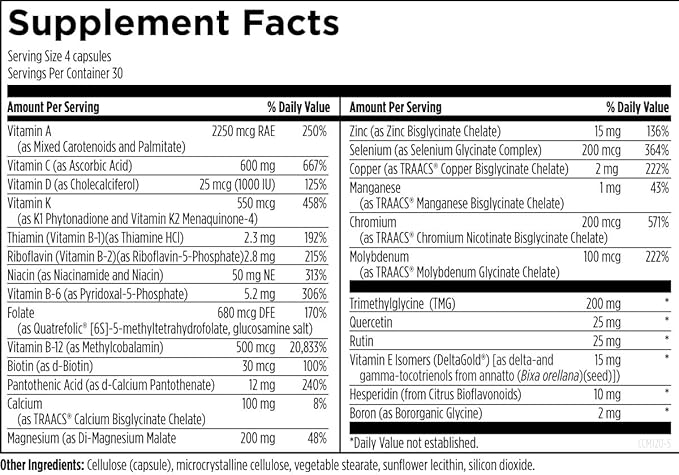 - Full-Spectrum Multivitamin - This powerhouse multivitamin supplies supportive nutrients not normally found in regular multis, such as delta and gamma tocotrienols, TMG, and fruit bioflavanoids.