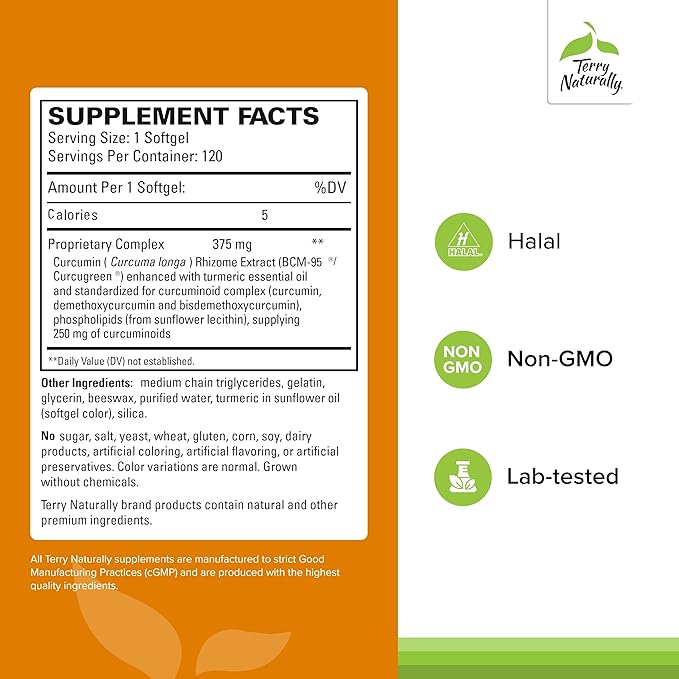 Terry Naturally CuraMed 375mg - Antioxidant Supplement for Brain & Immune Health Support - Dietary Supplement with Curcumin & Turmeric Essential Oil - Herbal Liver Support - 120 Softgels