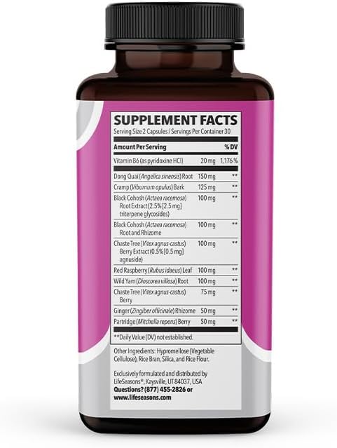 LifeSeasons - PreMense-T - PMS Relief Supplement - Support for Pre-Menstrual Symptoms, Cramping & Breast Tenderness - Nourish Tissue - Ginger Crampbark Dong Quai Chasteberry & Vitamin B6-60 Capsules