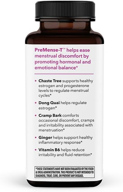 - CLINICALLY-TESTED INGREDIENTS: Our PreMense-T formula is designed to support hormonal balance by using ingredients like Ginger, Dong Quai, Crampbark and Vitamin B-6 that can help diminish cramps.
