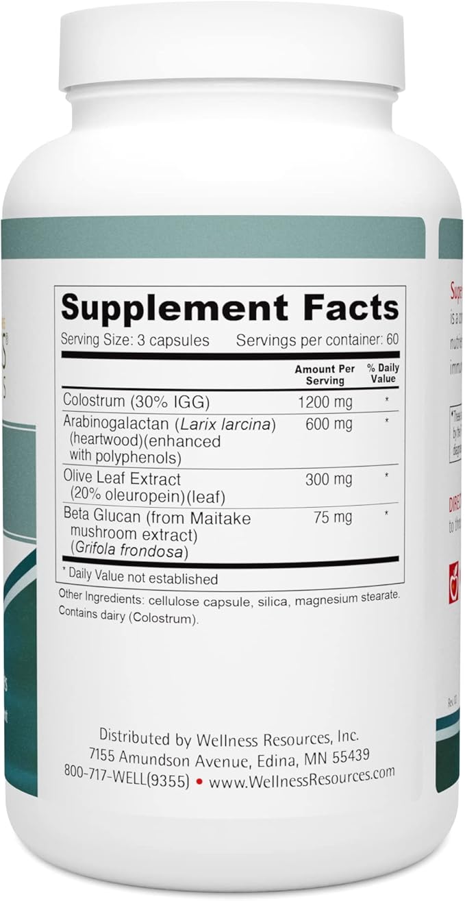 Wellness Resources Super Immune Booster - Colostrum, Beta Glucan, Olive Leaf, Arabinogalactan (180 Capsules)
