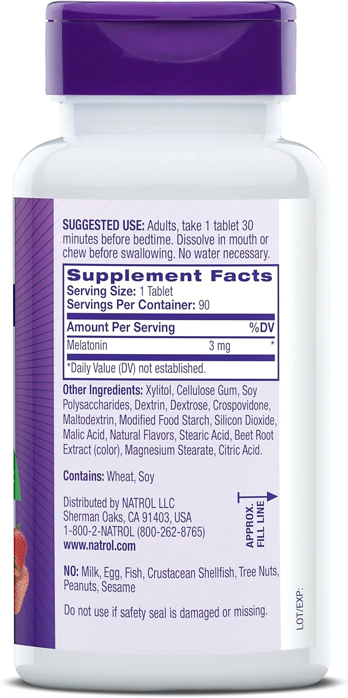 Natrol Fast Dissolve Melatonin 3 mg, Melatonin Supplements for Restful Sleep, Sleep Support for Adults, 90 Strawberry-Flavored Tablets, Up to a 90 Day Supply