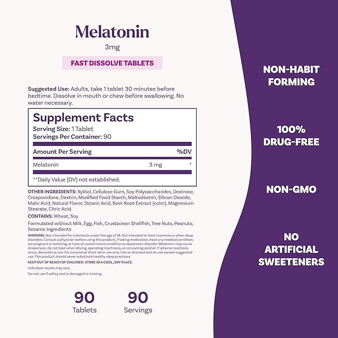 - 100% DRUG-FREE SLEEP AID SUPPLEMENTS: These melatonin 3 mg fast dissolve tablets are 100% drug-free and non-habit forming, and vegetarian