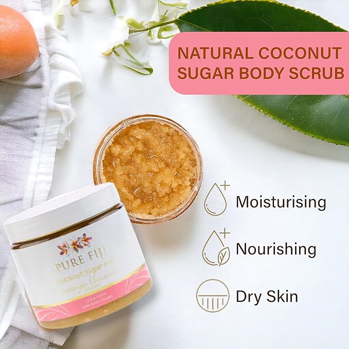 Pure Fiji Coconut Sugar Body Scrub - Body Exfoliator Scrub Natural Origin for Smooths and Softens Skin - Organic Exfoliating Sugar Scrub for Body, Orange Blossom, 15.5 Oz
