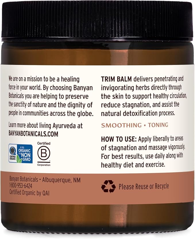 - TRIM BALM IS an invigorating herbal balm made with a blend of warming and penetrating herbs to support you in feeling your best. This organic detox massage balm offers natural support for healthy circulation.