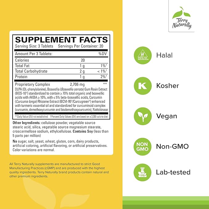 Terry Naturally Curamin Extra Strength - Curcumin & Boswellia Supplement for Healthy Circulation Support - Turmeric Supplement to Support Joints, Muscle Health & Endorphin Production - 60 Tablets