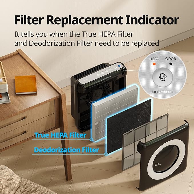 - [Filter Alerts] The air filter indicator tells you when the filters need to be replaced, and the pre-filter needs to be cleaned for maximum efficiency, based on how much air they have processed.