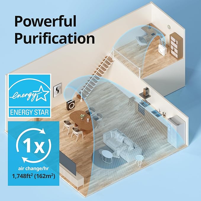 - [Auto Mode] Constantly monitoring the air quality, the fan automatically adjustes to most effectively purifiy your space as needed providing a new level of clean in real time.