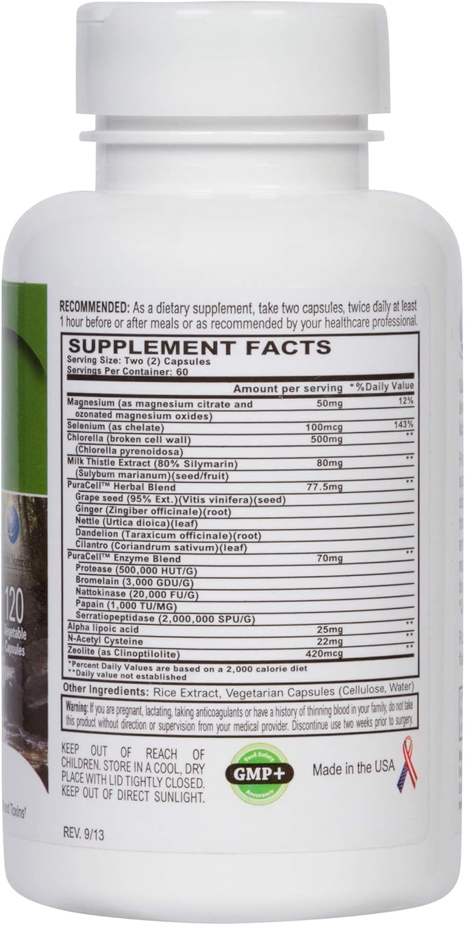 - World Nutrition PuraCell is a potent blend comprising minerals, herbs, enzymes, and chlorella.