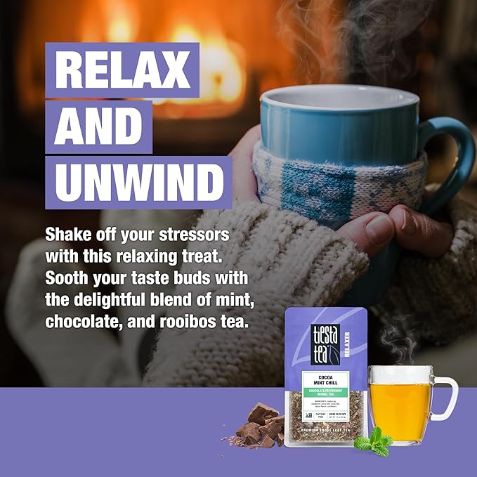 - PREMIUM QUALITY LOOSE LEAF TEA: Tiesta Tea’s Cocoa Mint Chill blends premium loose leaf rooibos, rich cocoa, and refreshing peppermint for an exceptional tea experience. Unlike ordinary bagged teas, this handcrafted infusion offers a vibrant aroma and a full-bodied, indulgent chocolate-mint flavor in every sip, making it a perfect treat for those craving a unique and flavorful brew.