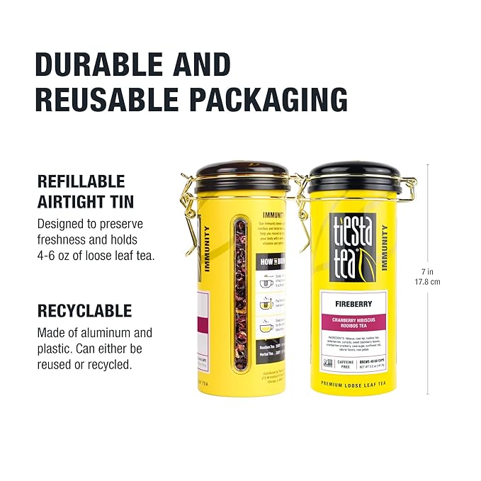 - FRESHNESS THAT LASTS: The 5 oz refillable tin locks in the freshness and preserves the rich, vibrant flavor of your tea. With up to 50 cups per pouch, this convenient package ensures lasting enjoyment and makes it easy to keep your tea fresh whenever you’re ready to brew another cup.