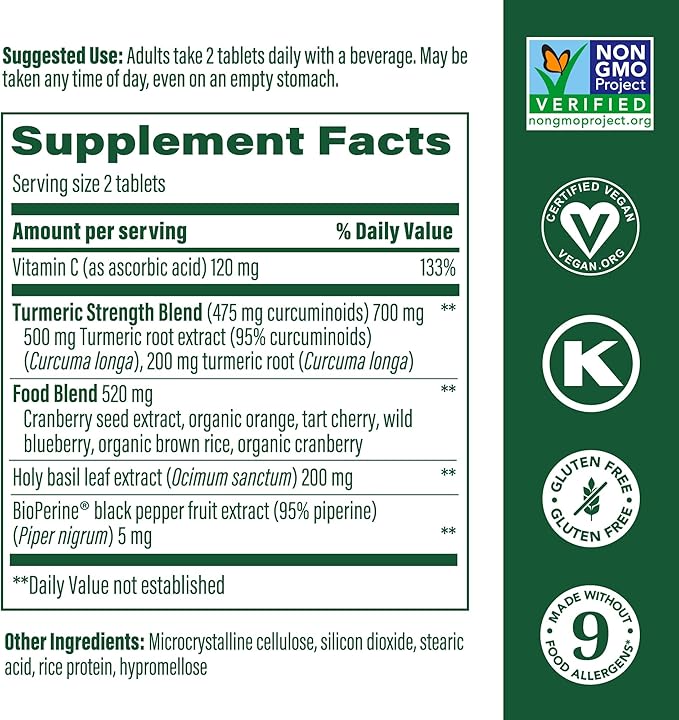 - MADE WITH REAL FOOD: This Tumeric supplement is crafted with key nutrients plus 520 mg of real food per serving including tart cherry, cranberry, and blueberry+