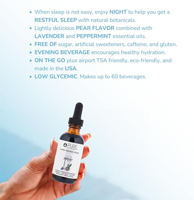 Pure Inventions Night - Pear Flavored Water Infusion Drops - No Sugar, Calories, or Artificial Sweeteners - 60 Servings - 2oz