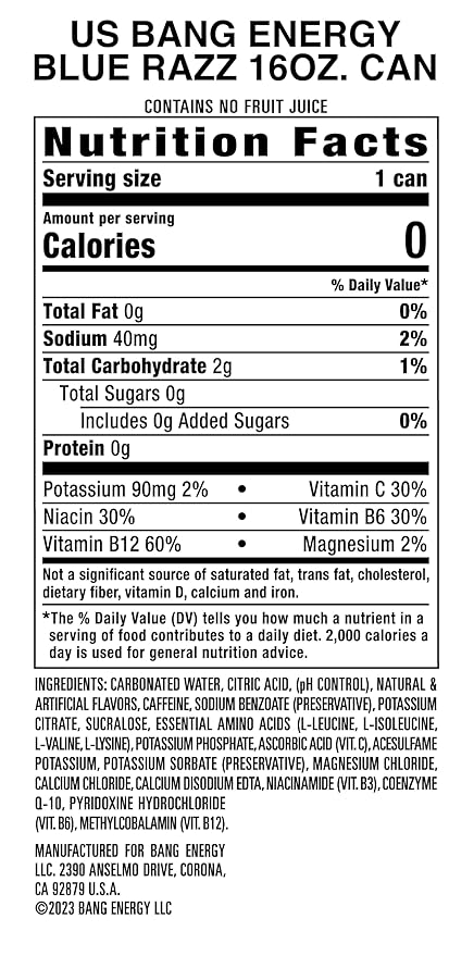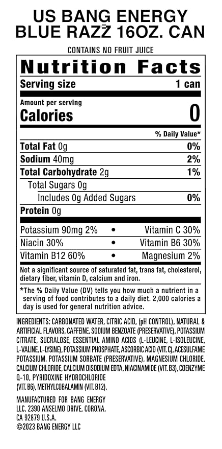 - GLUTEN-FREE AND VEGAN-FRIENDLY: Bang Energy drinks are gluten-free and vegan-friendly, so they are perfect for any lifestyle or diet.
