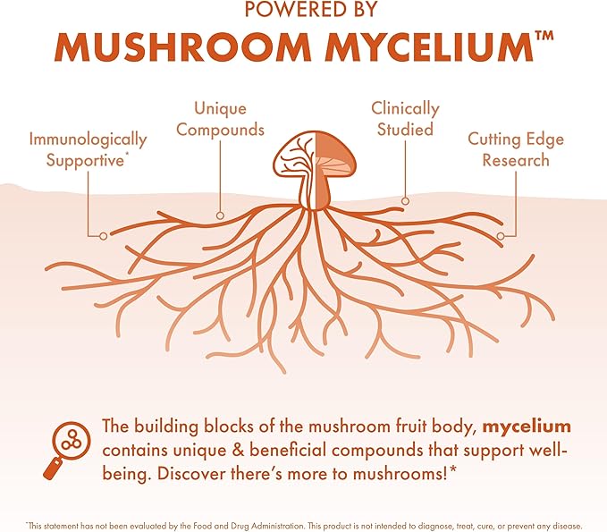 - Powered by Mushroom Mycelium: Our organic mushroom mycelium is grown on organic brown rice substrate; third-party studies show that mushroom mycelium and fermented rice substrate support your health*